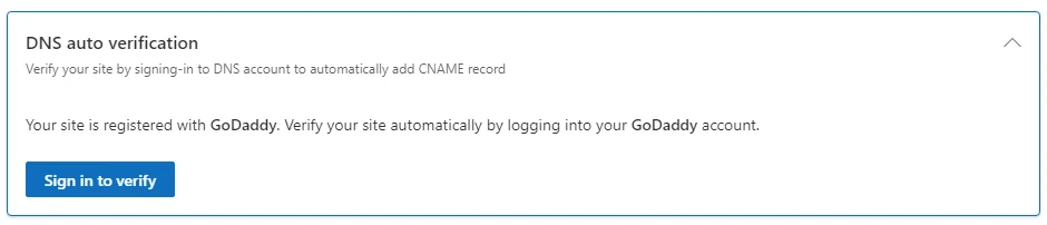 If your domain provider supports this, you will see an option to ‘Sign in to verify‘ on the interface shown below.