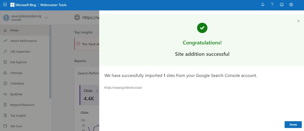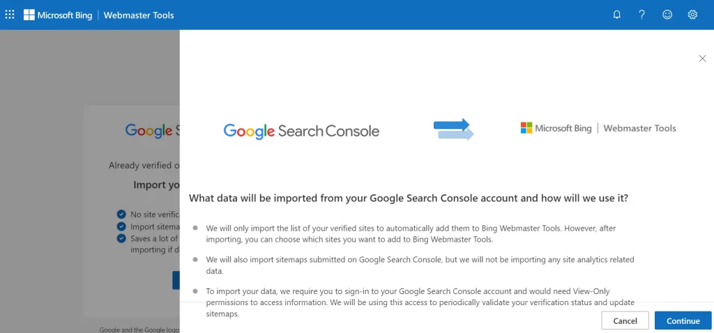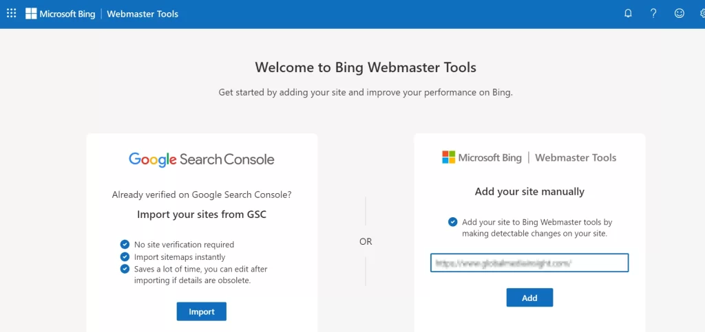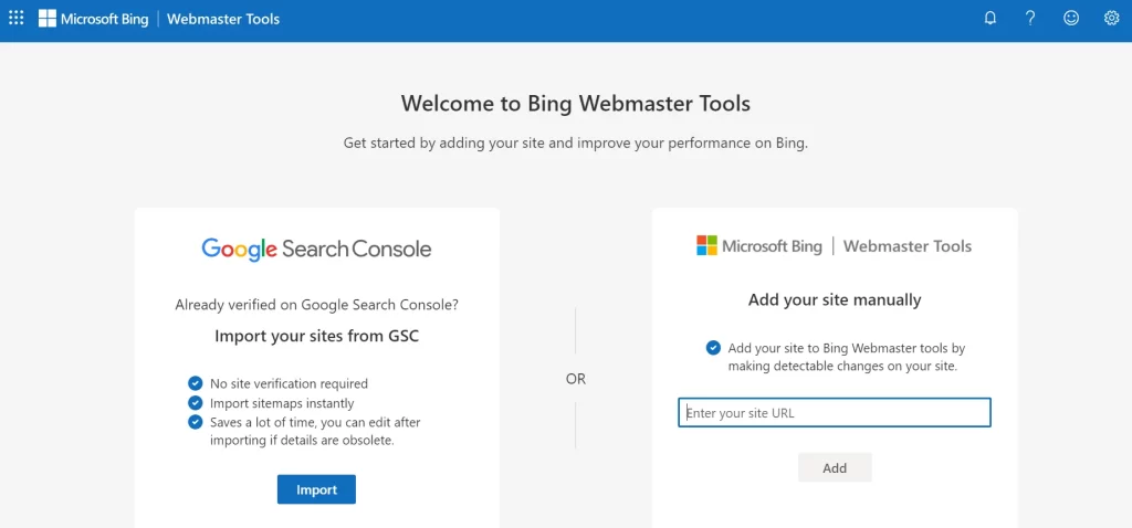 If you already have a Google Search Console account, Bing Webmaster Tools allows you to import your website directly.