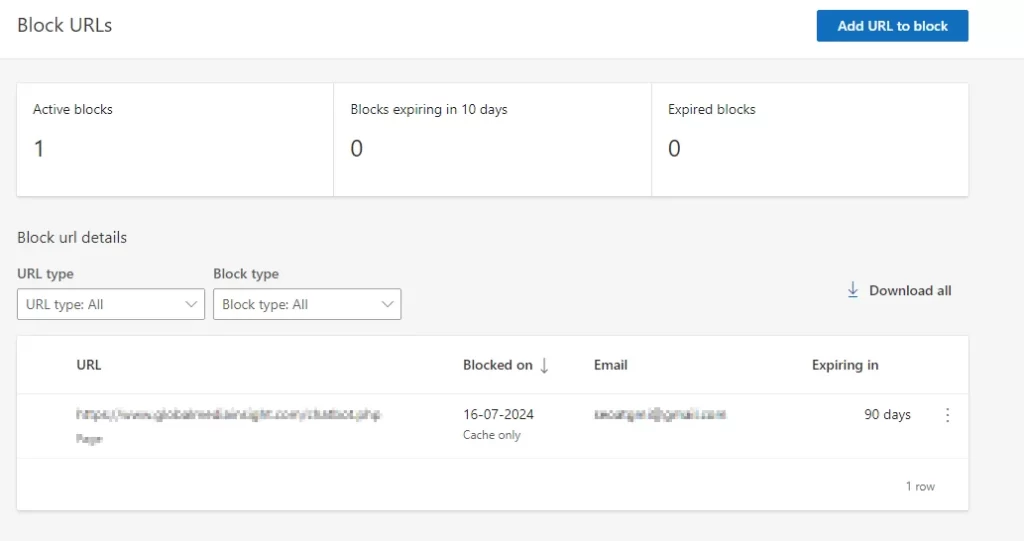 • Duration: The URL is blocked for an initial period of 90 days.