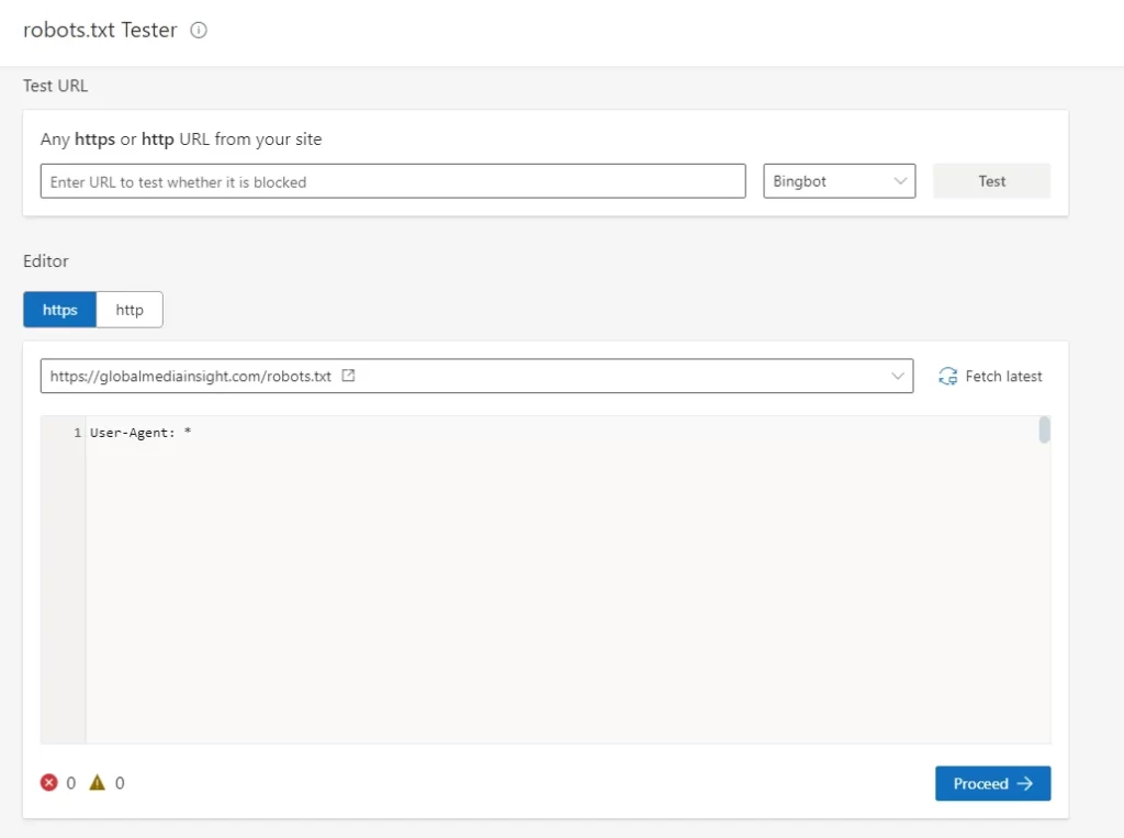 • URL Testing: Check if specific URLs are blocked or allowed based on your robots.txt rules.
