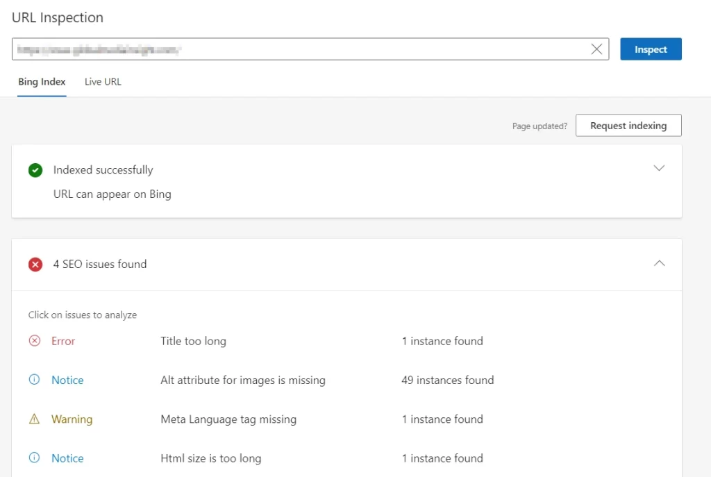 This information helps you identify and fix technical issues that might be hurting your Bing ranking