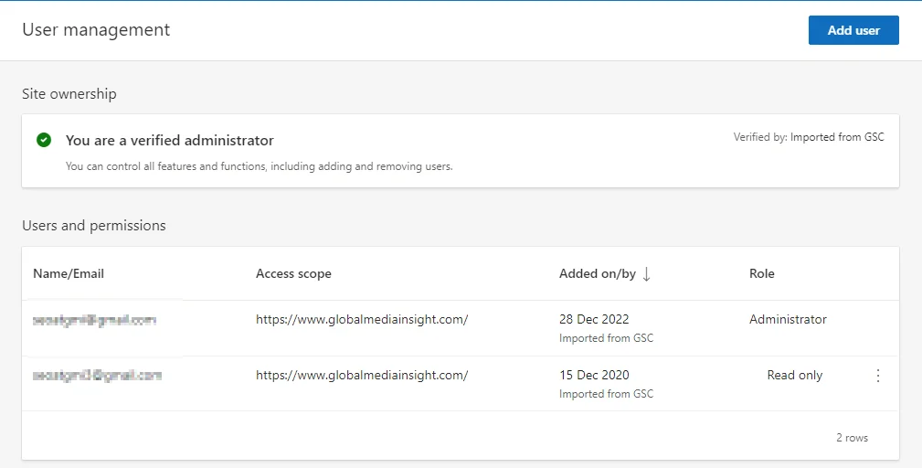 Bing Webmaster Tools offers a User Management feature to control who can access your website’s data.