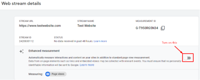 Note: You can enable enhanced measurement only on webstream data.