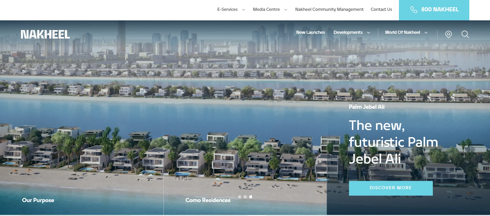 The website’s neatly arranged menu makes it super easy to explore Nakheel’s diverse offerings—including residential sales, home rentals, hospitality & leisure, and malls.